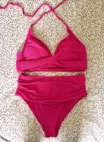 Conjunto de Bikini de Cintura Alta con Abertura, Cuello en V, Lazo Sexy, Color Sólido, Traje de Baño para Vacaciones en la Playa. EXCELENTE CALIDAD.