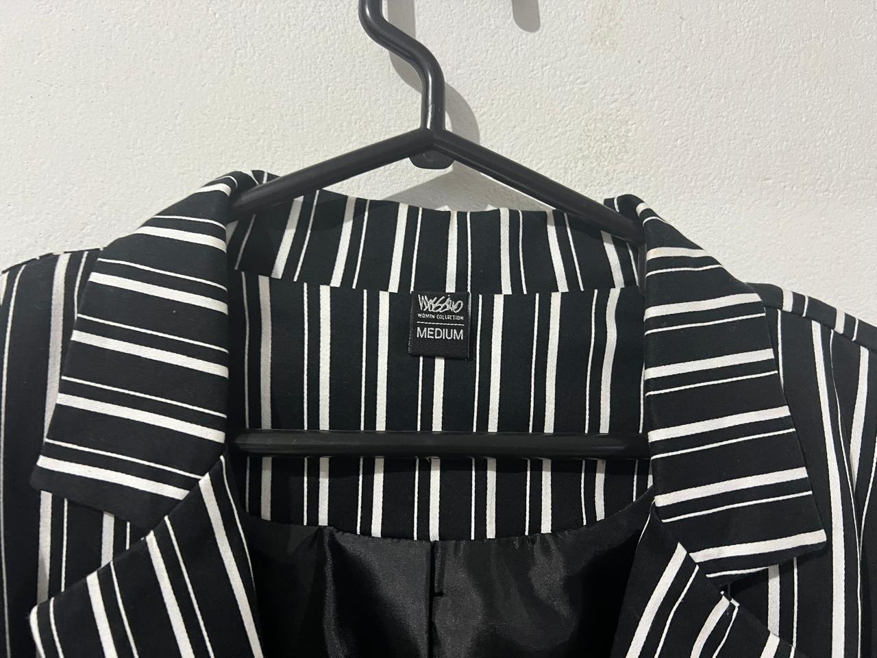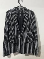 Blazer Mossimo mujer, diseño de rayas blancas negras, en talla M.