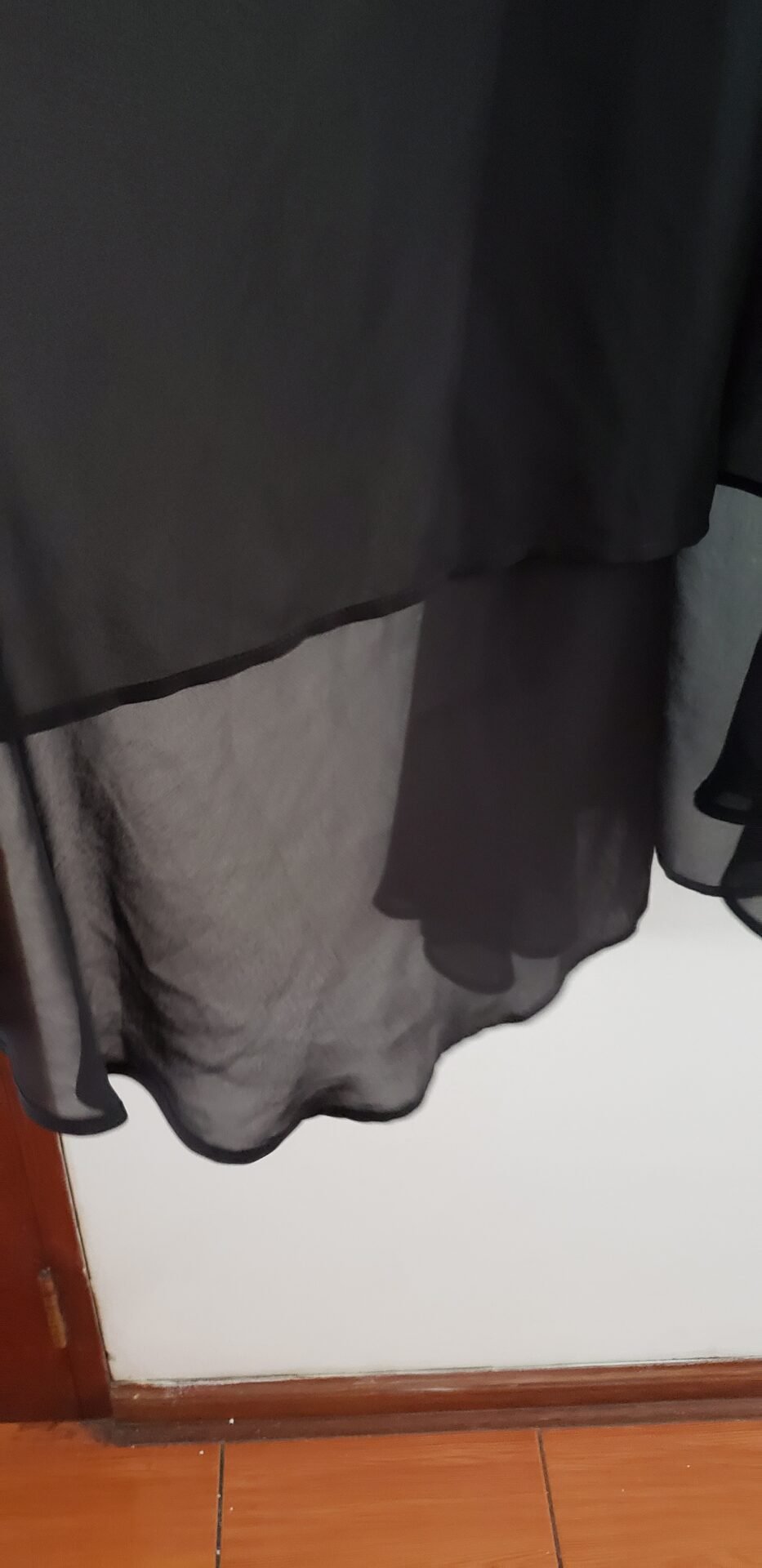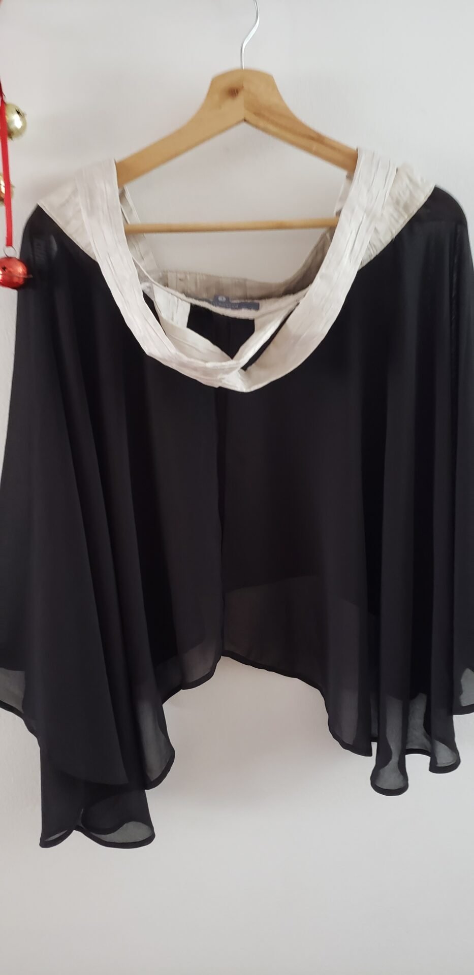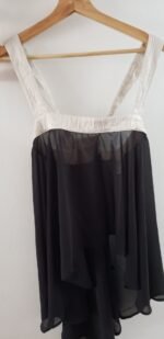 BELLA BLUSA CON TIRANTES, EN COLOR NEGRO CON PLATEADO, DE GASA, MARCA MENTA Y CHOCOLATE