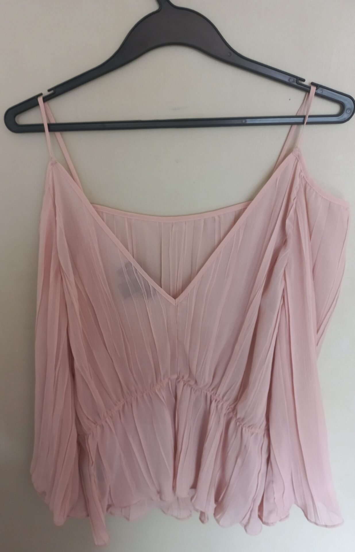 Blusa rosada de gasa HM, con escote en espalda