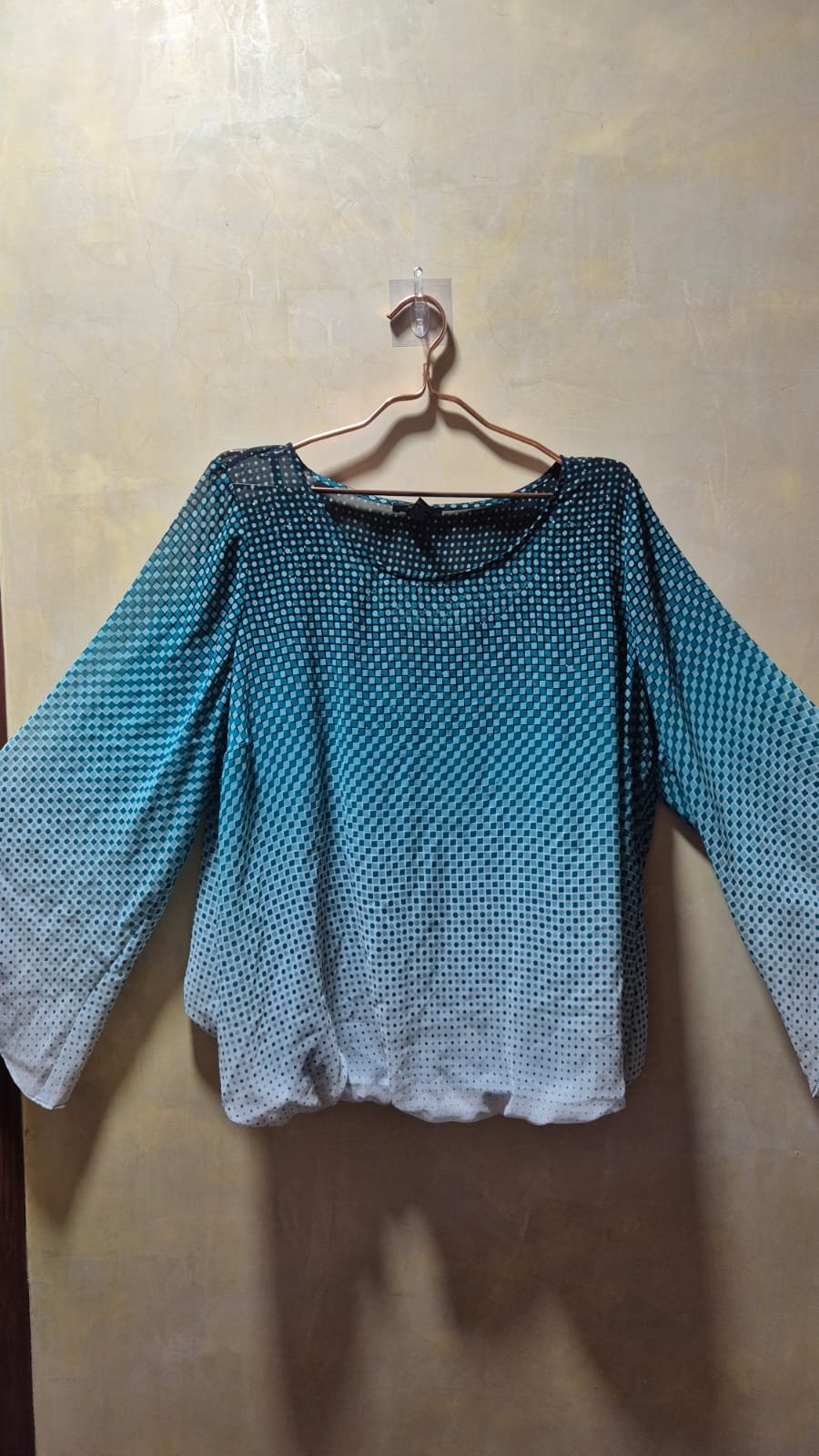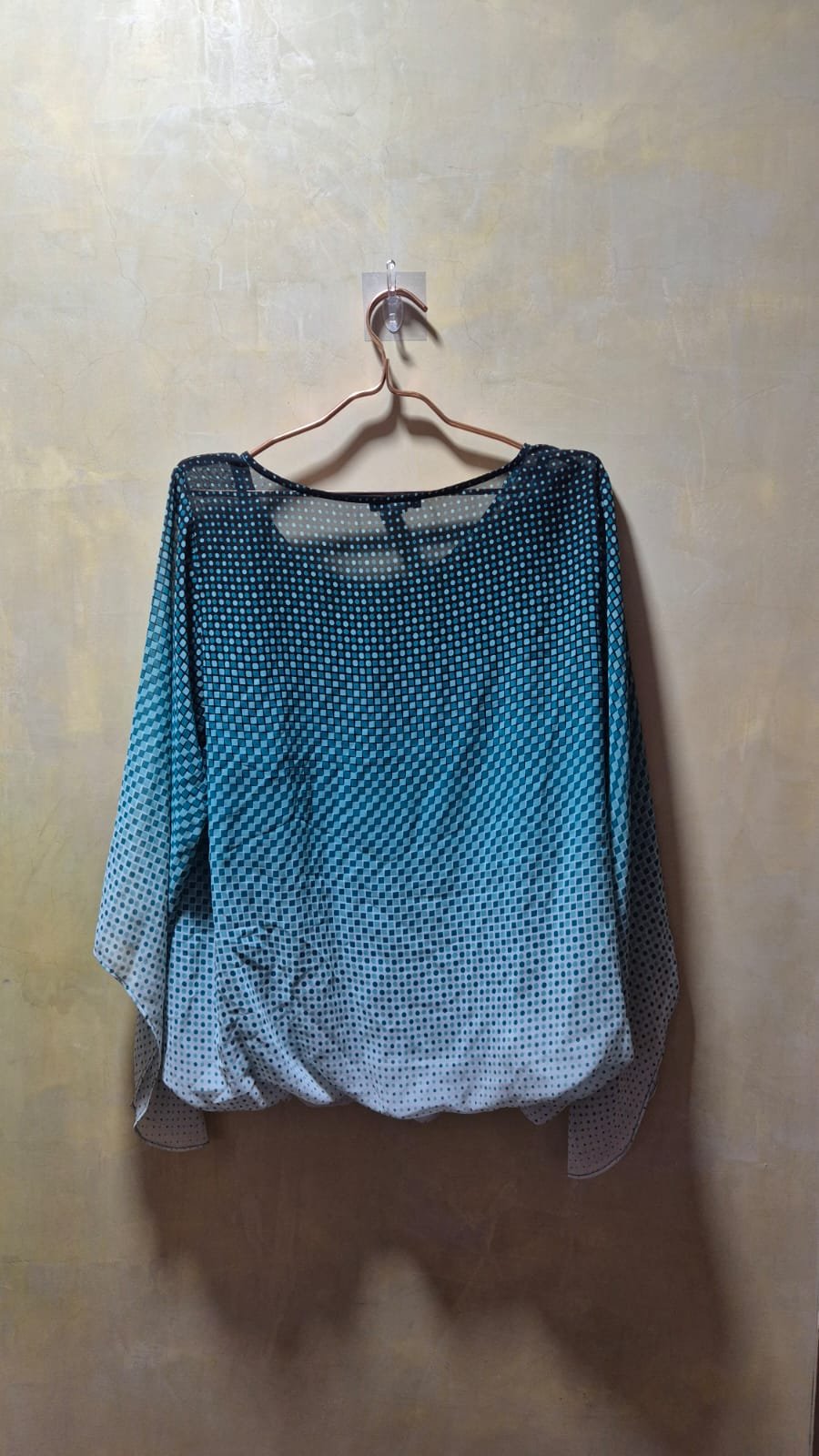 BLUSA TALLA XXL COLOR TONOS CELESTES DEGRADADO , CON FORRO EN SU INTERIOR TIPO STRAPLESS CON TIRA , PRODUCTO SEMI NUEVO ( NO ESTA USADO SOLO QUE NO TIENE ETIQUETA)