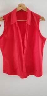 BELLA BLUSA DE COLOR ROJO, CON DETALLES DE BRODERI