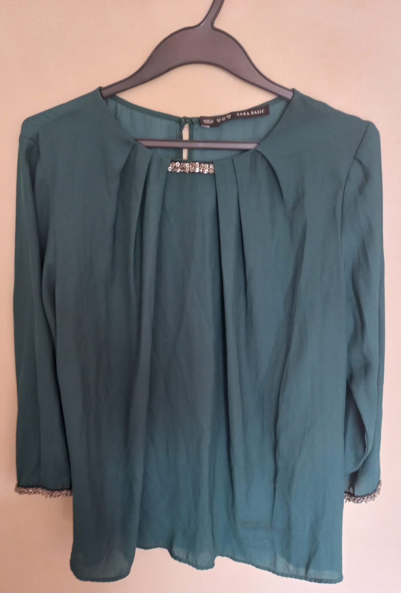 Blusa ZARA, con mostacillas en cuello y mangas.