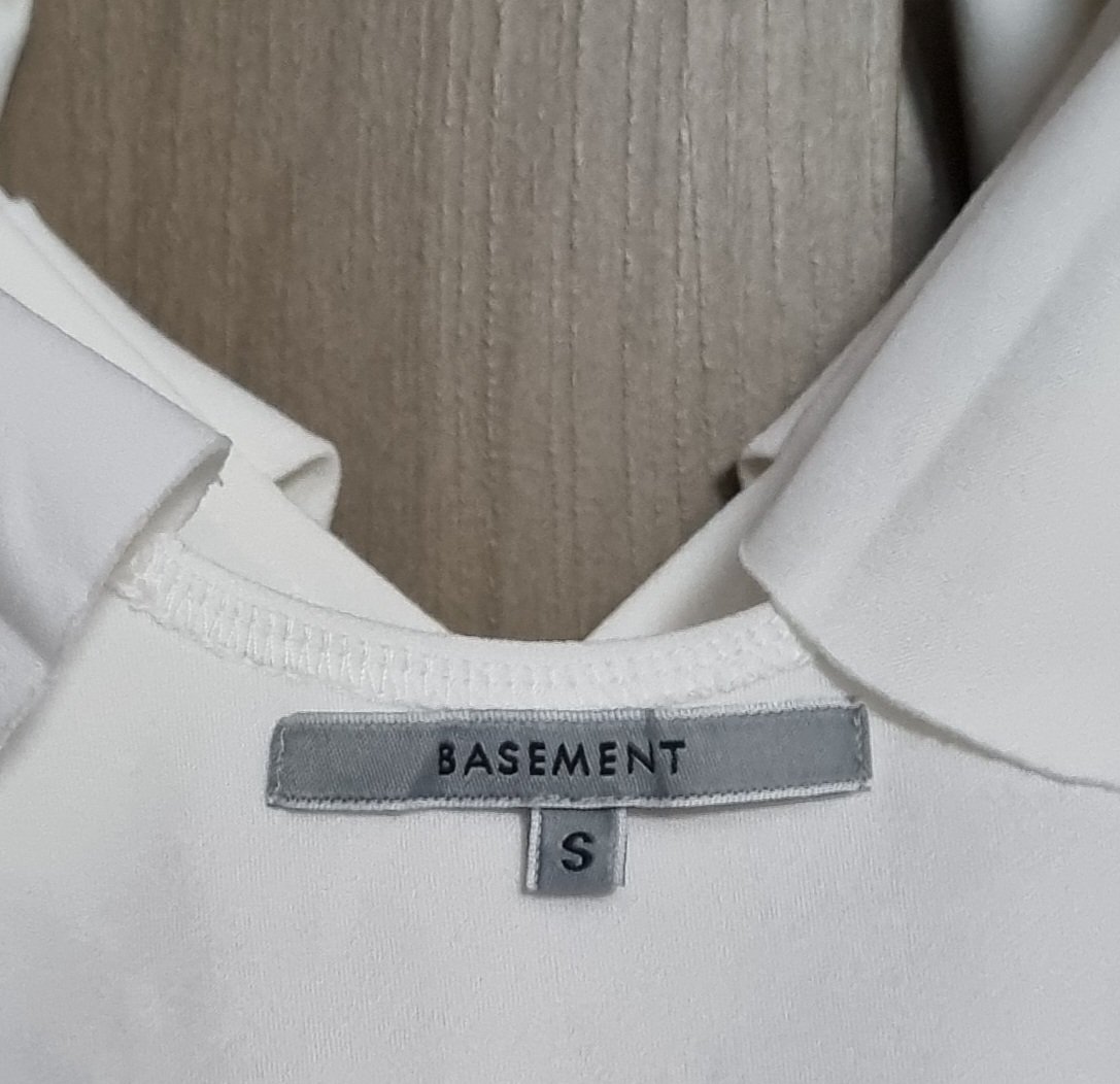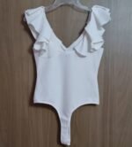 body casual sin mangas con cuello v, con diseño de vuelo, color perla, material 100% rayon, marca basement, talla s- small (talla real). solo se usó 2 veces, como nuevo.