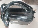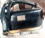 Cartera de charol marca Michelle Belau en color negra con un detalle de serpiente en la parte de abajo y dorado.