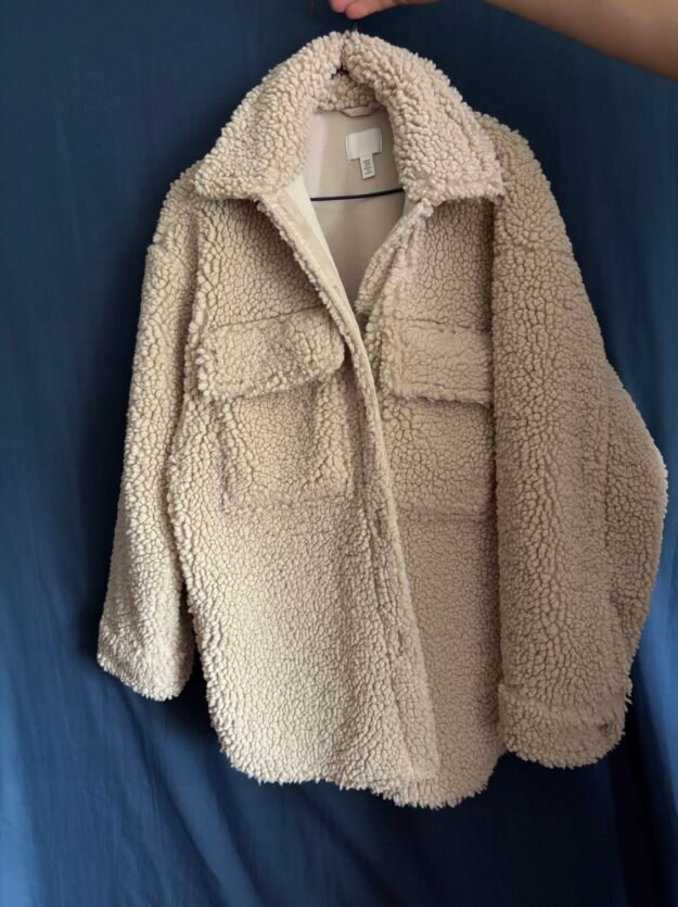 Casaca sport color beige talla XS comprada en tienda H&M, exterior tipo oveja, 2 bolsillos y botones frontales. Entrega estación de tren san borja sur, primavera o cabitos.