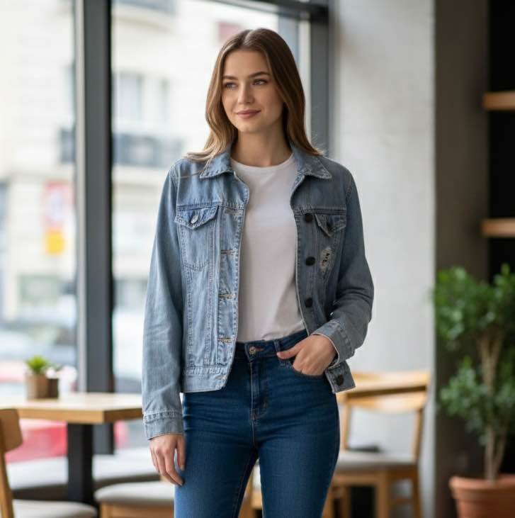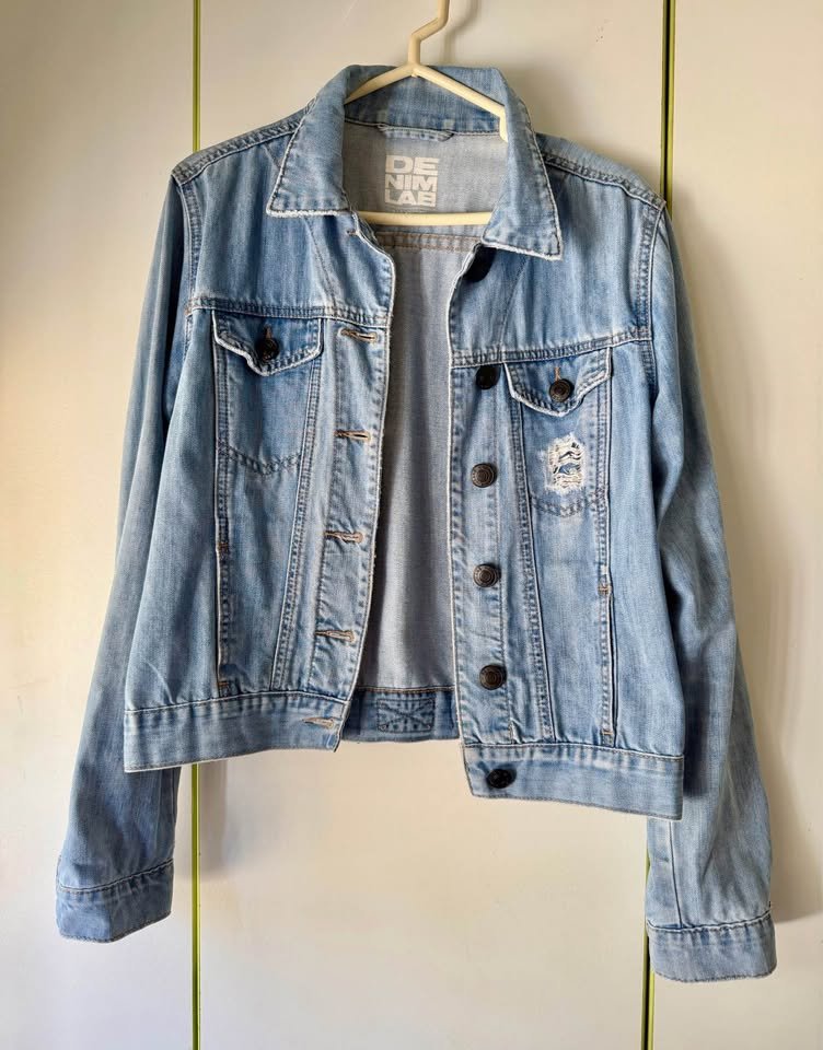 Vendo casaca de jean claro marca Denim Lab talla L. Usada pero en buen estado. Es un poco corta, no es oversize