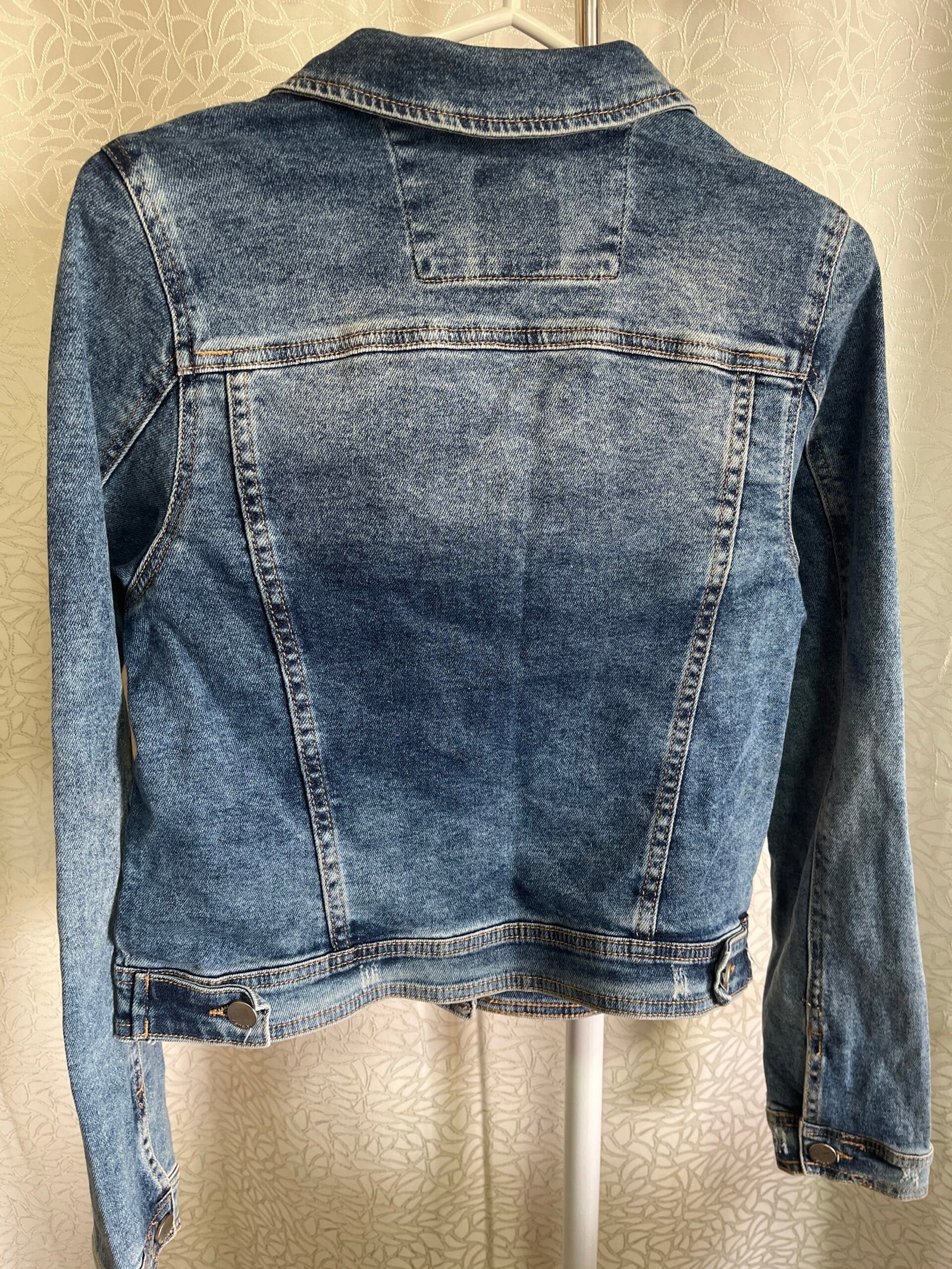 - Casaca Jean azul nevado talla M pequeña, a la cintura. Como nueva.