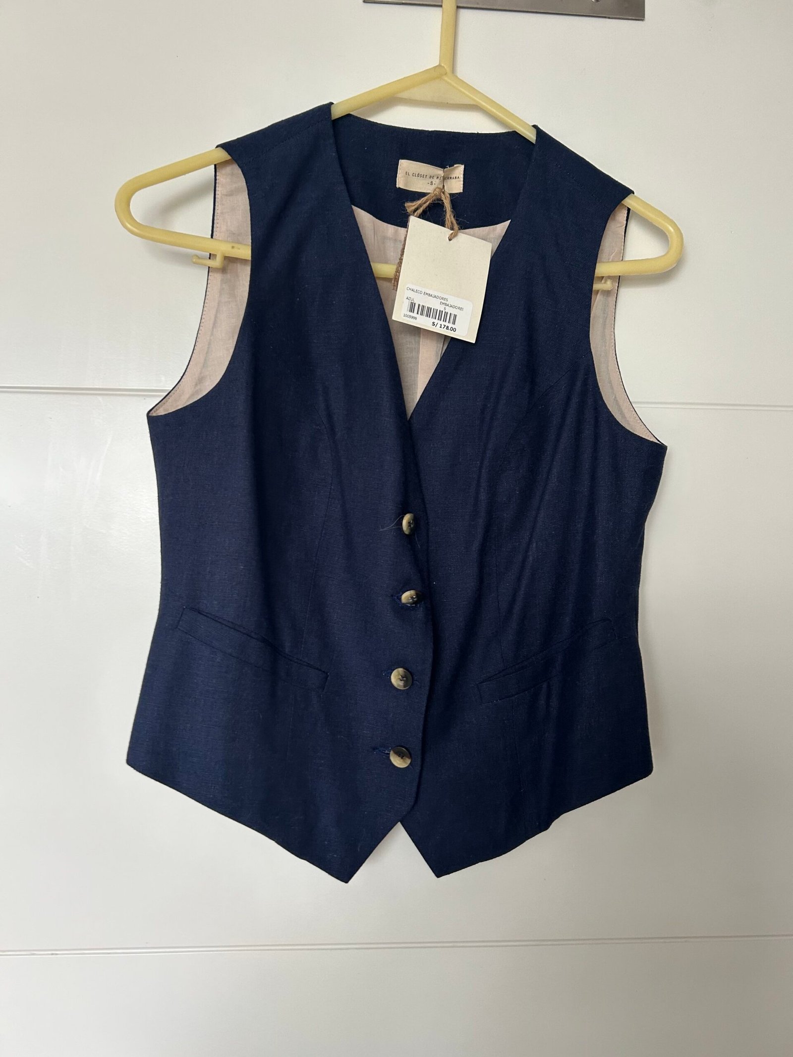 Chaleco de vestir, marca El Closet de mi Hermana, talla S, nuevo con etiqueta, Precio original 178 soles. Material rayón.