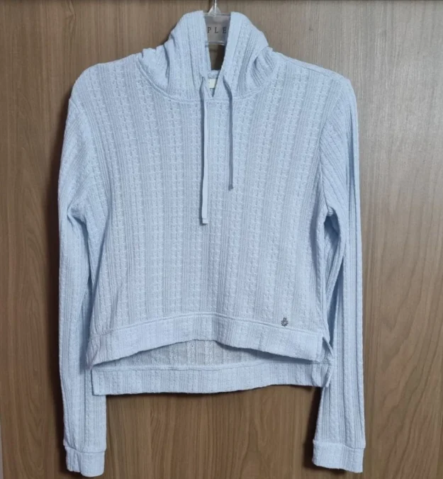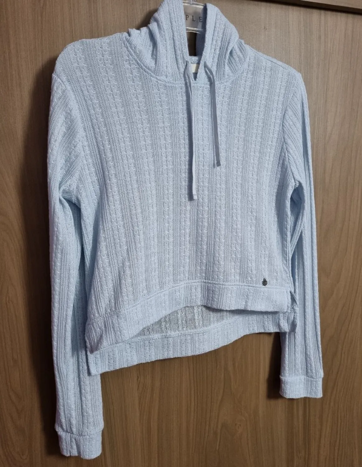 chompa casual de manga larga y capucha, color celeste, marca milk, talla real m-medium (talla etiqueta L). En muy buen estado, sin manchas y sin defectos.