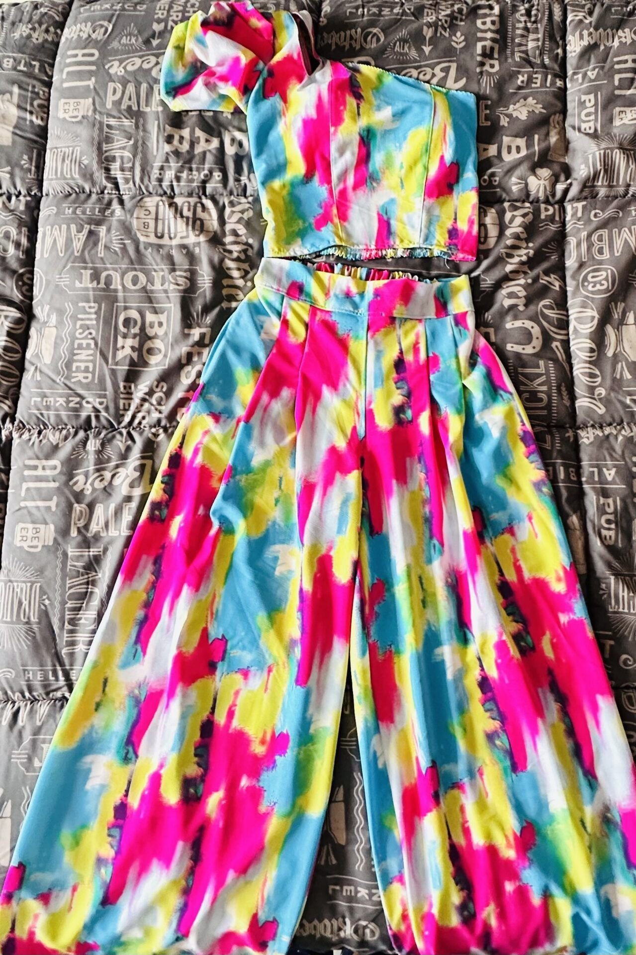 Conjunto Arcoíris. Tiene licra en la parte de atras del top y del pantalon lo que ayuda que se ajuste al cuerpo. Talla Standar