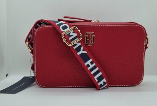 Crossbody TH nuevo con etiqueta color rojo. Correa de tela
