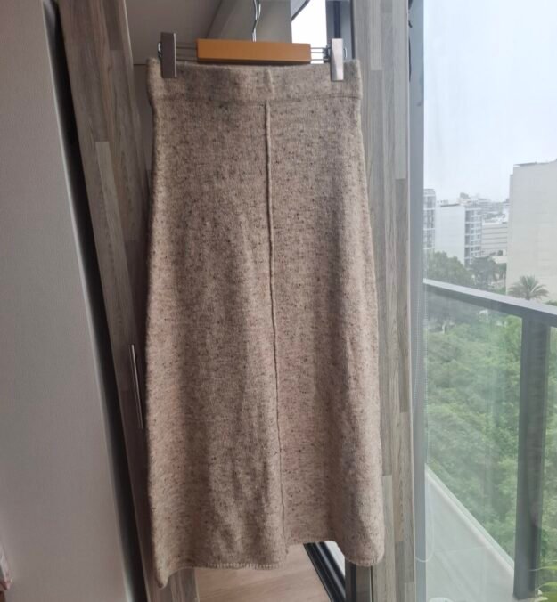 Diseño de corte midi con caída fluida que estiliza la figura, ideal para looks elegantes y casuales. Confeccionada en tejido de lana suave, brinda abrigo y comodidad, perfecta para temporada de otoño/invierno.