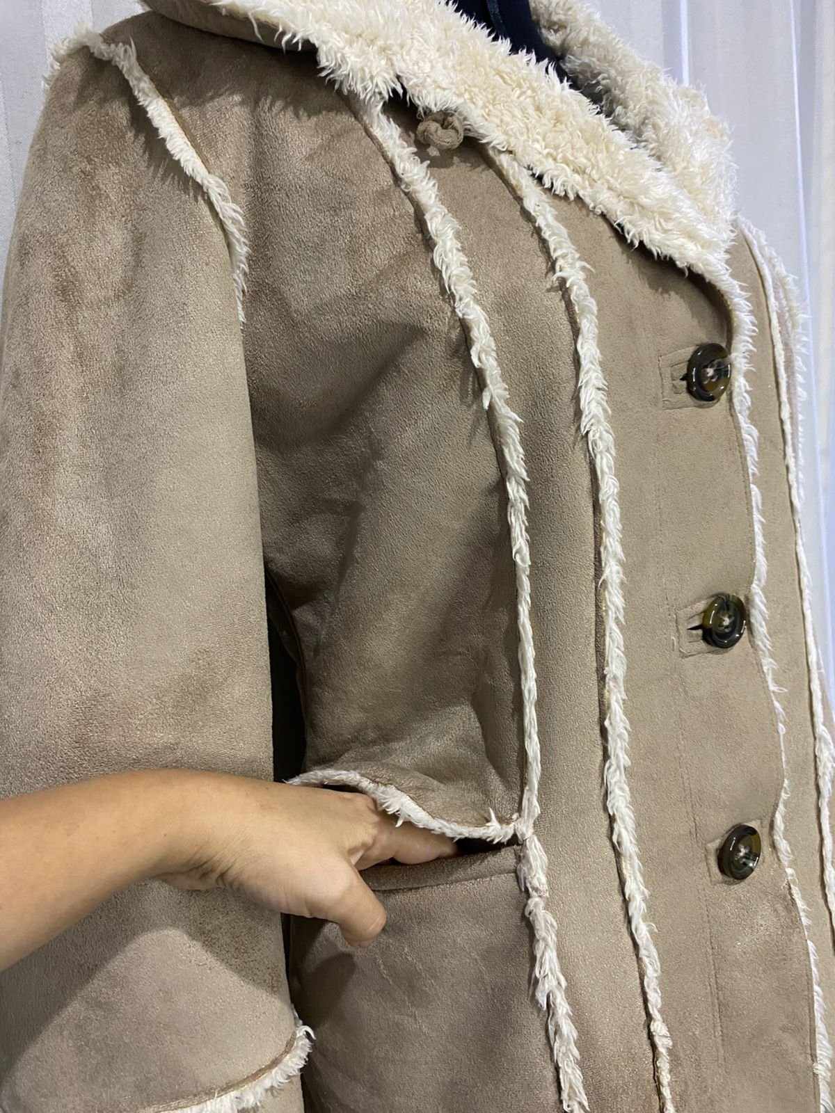 Material: Exterior de gamuza / Forro interno de sherpa