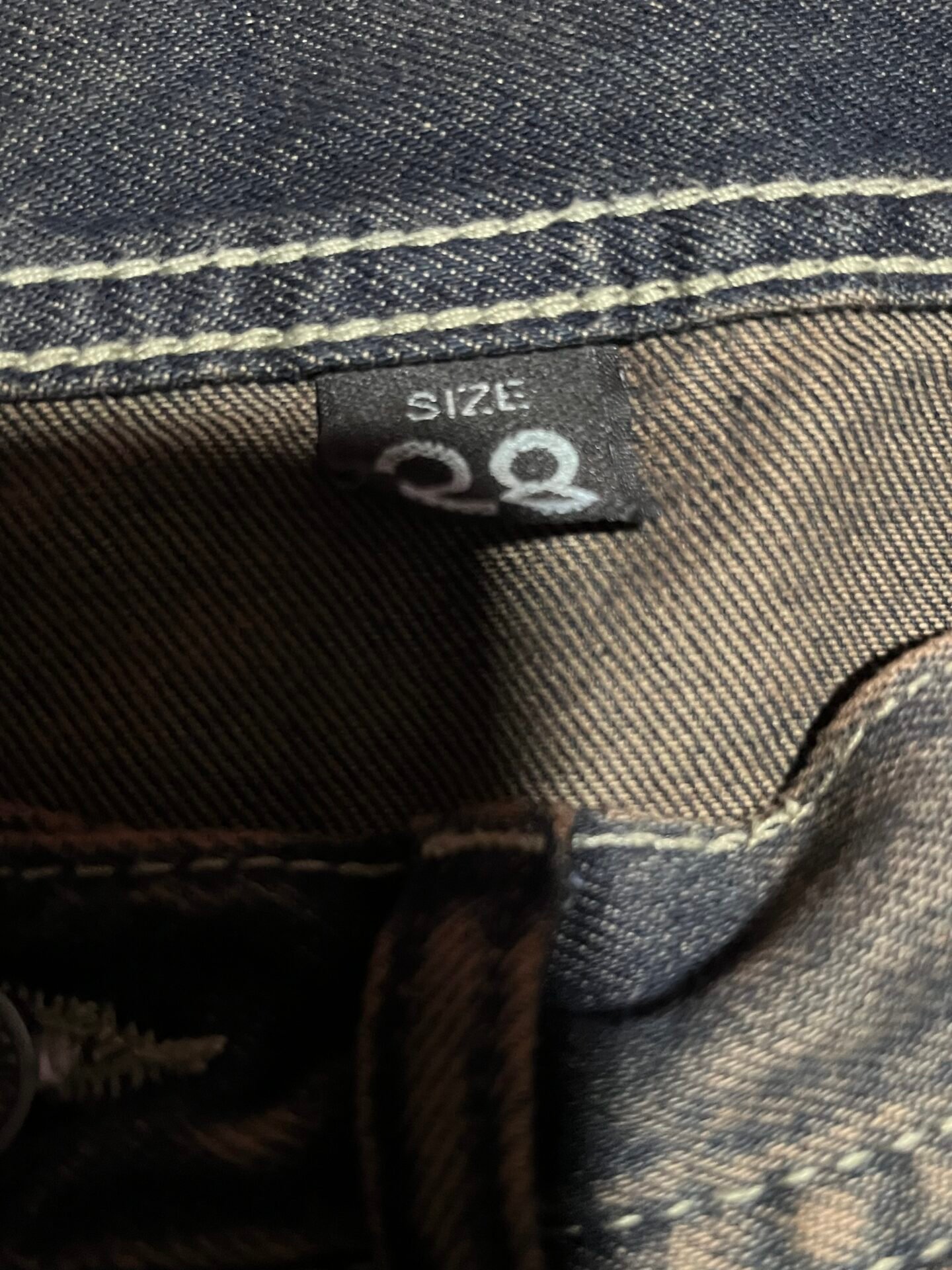 Color madera focalizado,es talla 28 y está usado solo una vez,no tiene ningún detalle