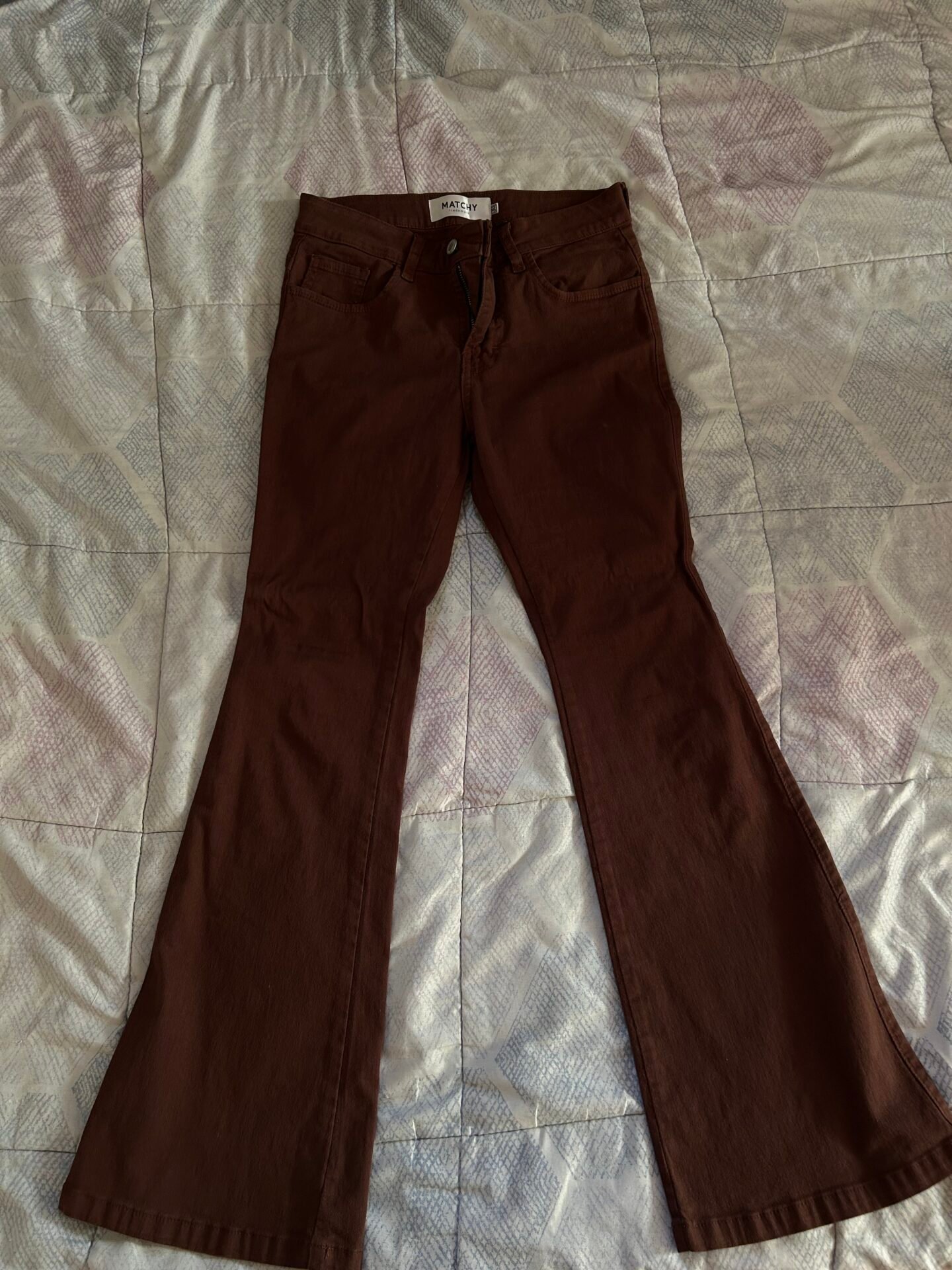 Talla 30, solo tiene un uso, el flare es color marrón, se amolda a tu cuerpo