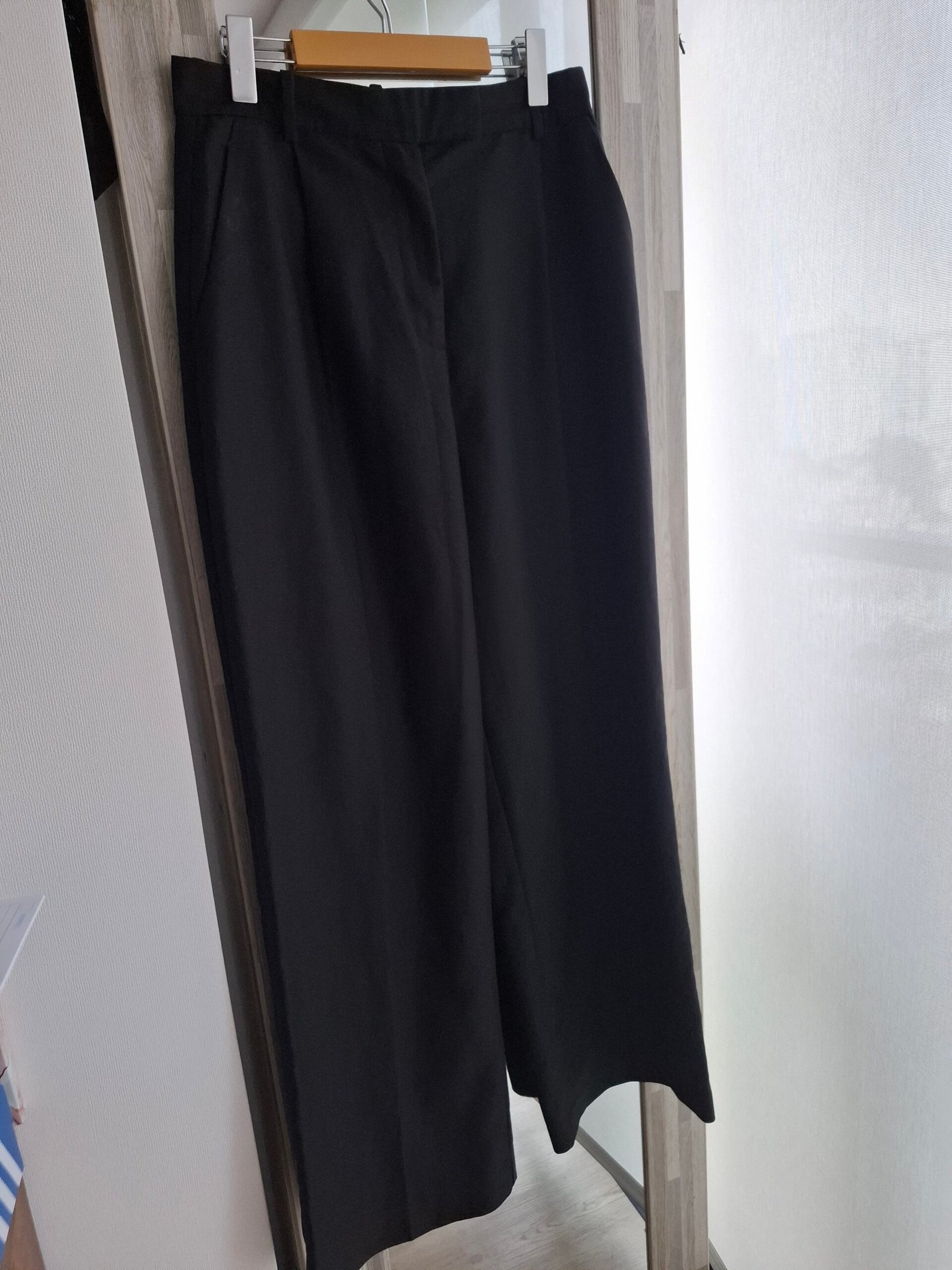 Pantalón de vestir ZARA de diseño sastrero, confeccionado en tela de estructura firme y caída elegante. Presenta corte recto ancho, una silueta clásica que aporta presencia, prolijidad y una estética refinada.