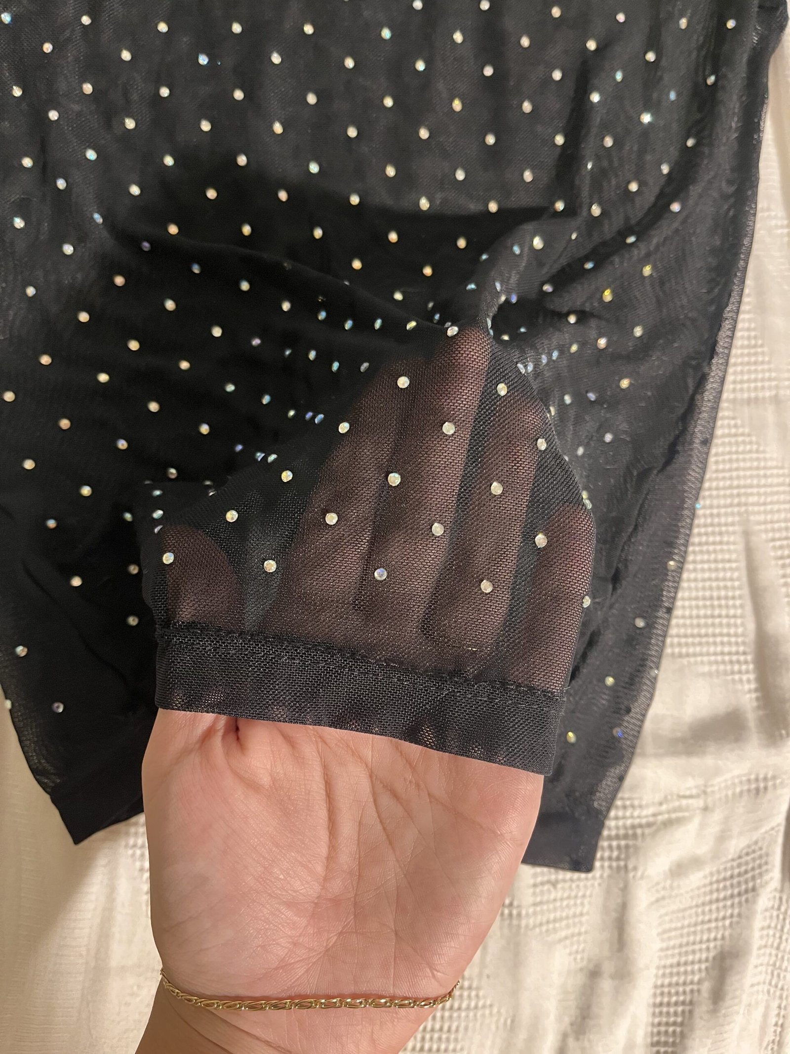 Talla S/M es de mesh tela transparente tiene brillos super lindo