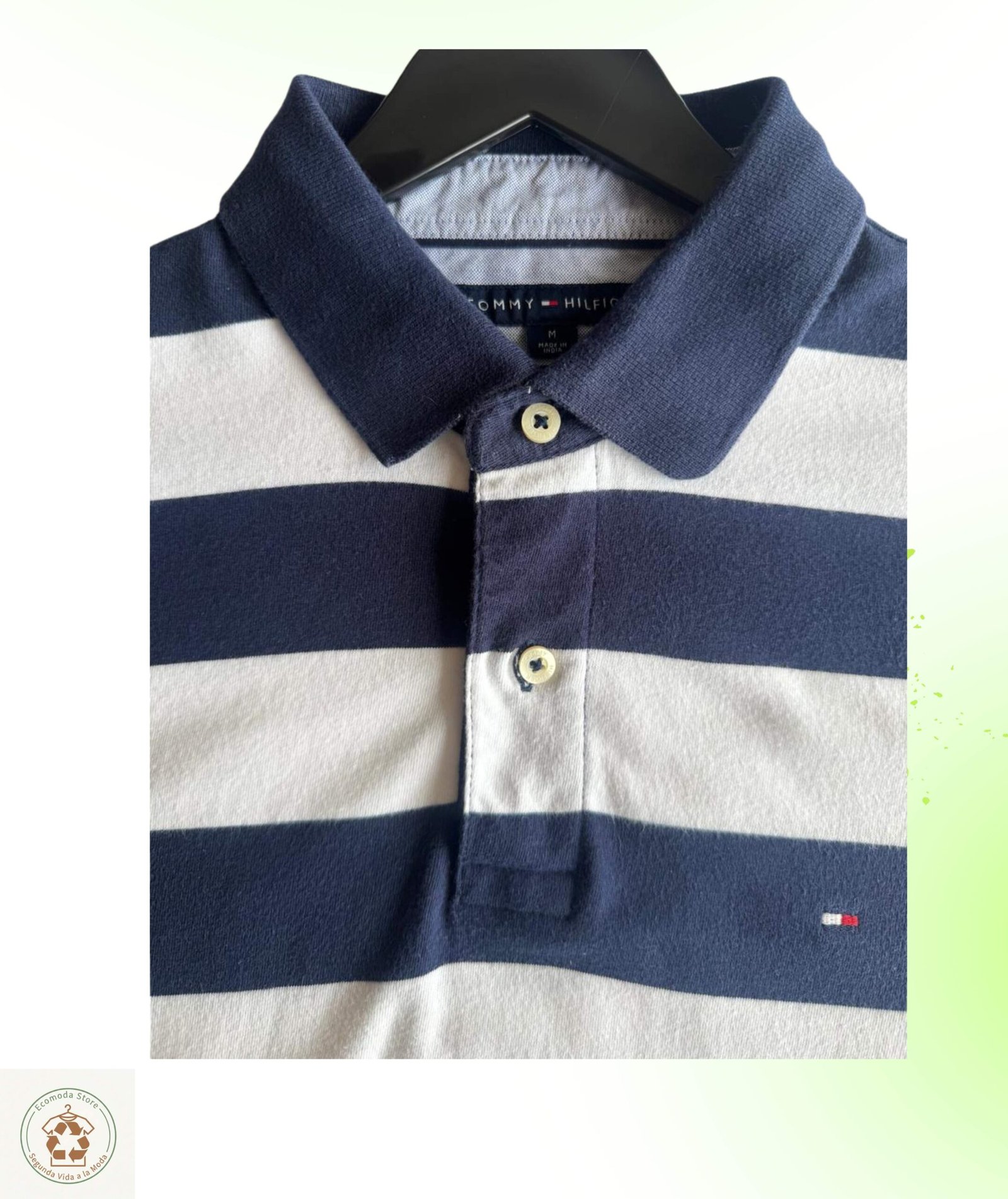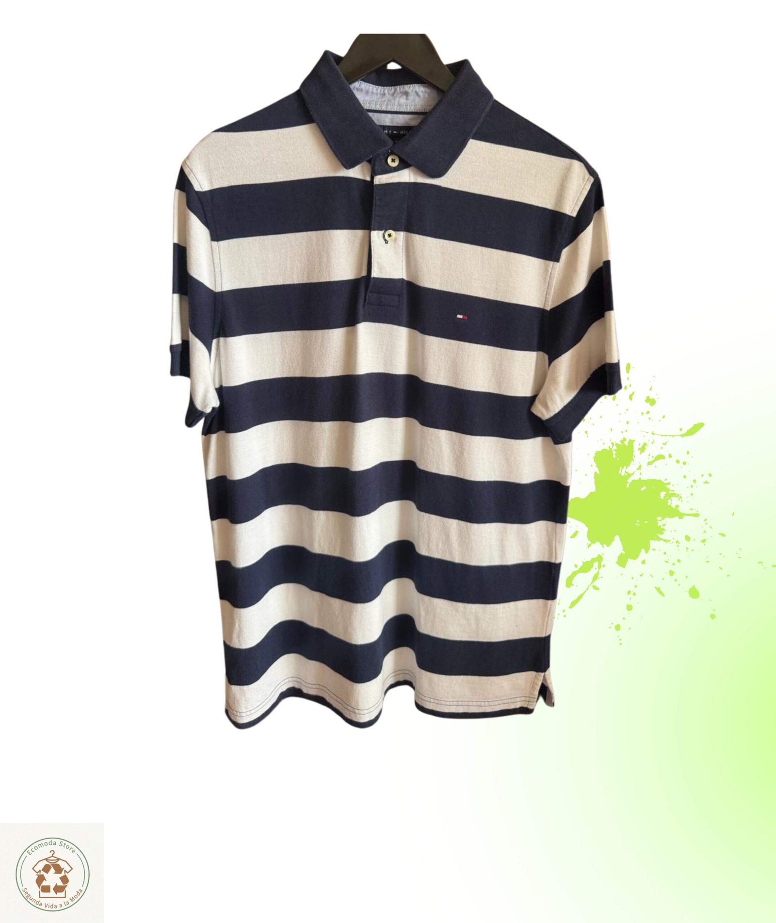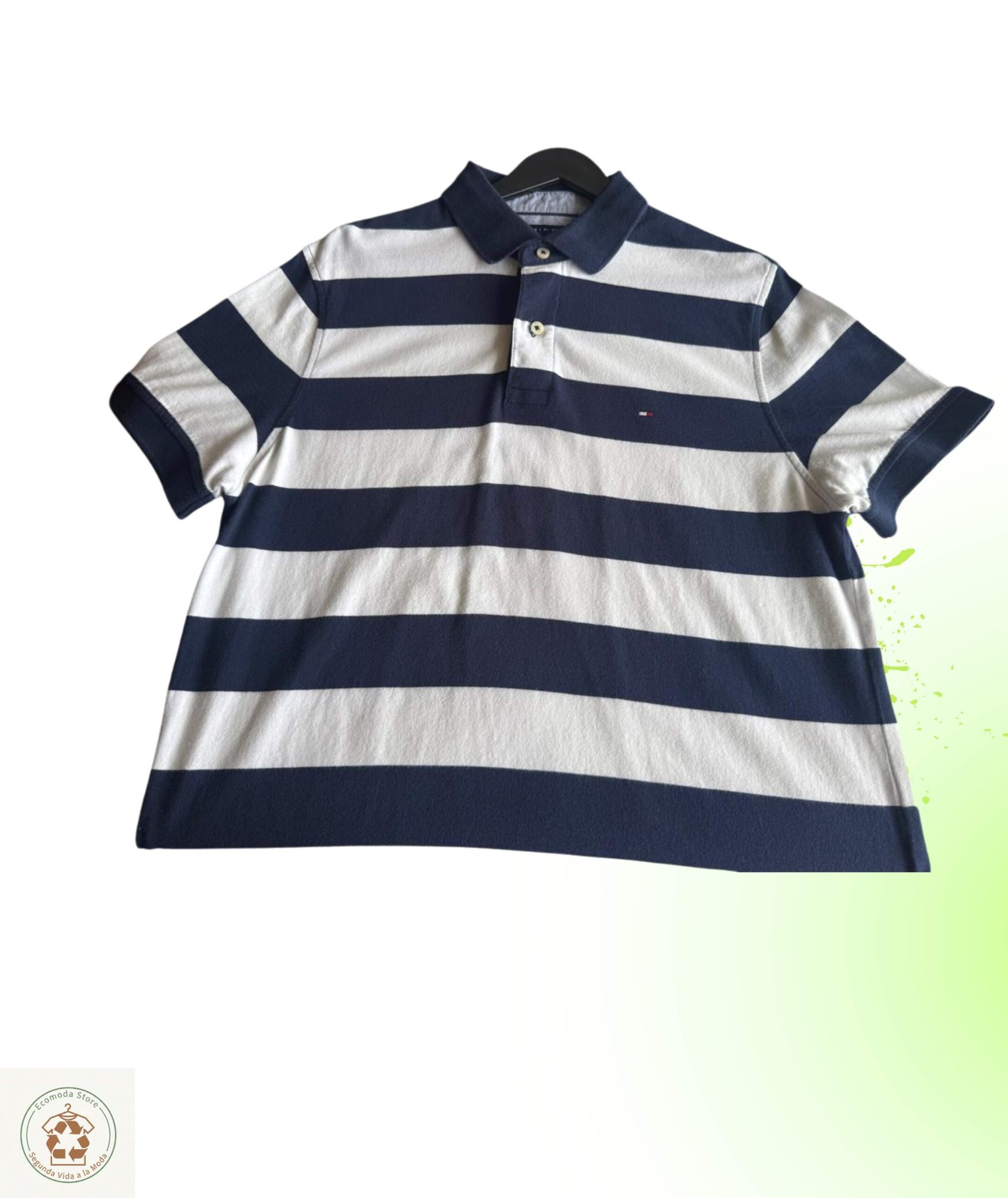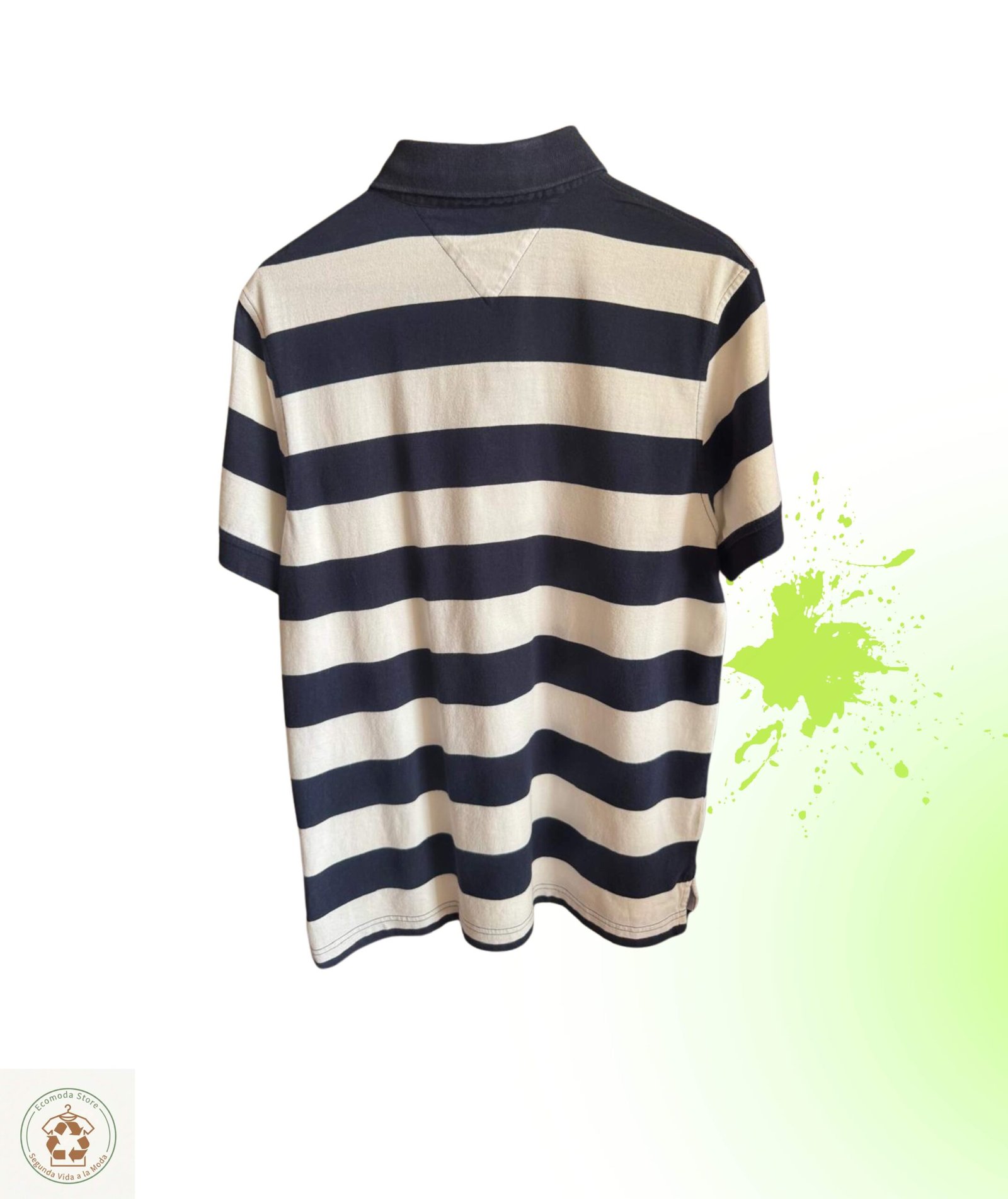 ¡Eleva tu estilo con esta camiseta de polo Tommy Hilfiger! Con su diseño clásico a rayas azules y blancas, este polo te ofrece una mezcla perfecta de sofisticación y comodidad. Su ajuste cómodo y material de alta calidad te mantendrán fresco y elegante todo el día
