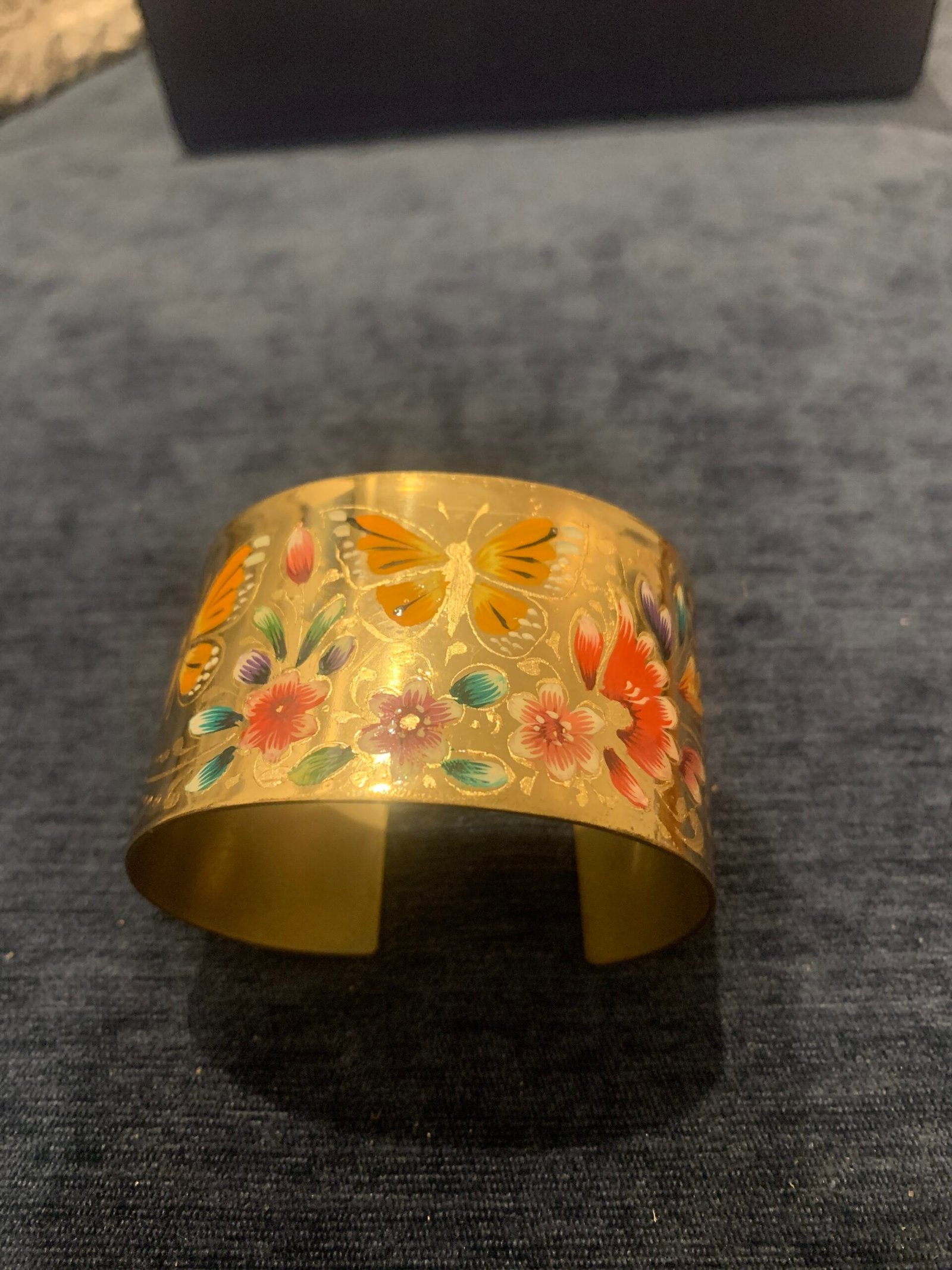 Hermosa pulsera de metal dorado pintada a mano con mariposas
