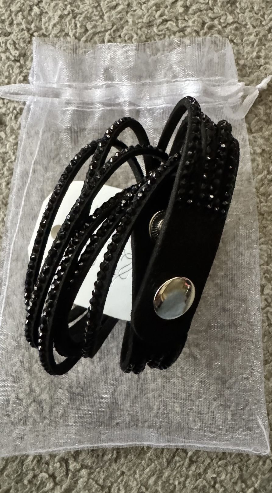 Pulsera negra con cristales