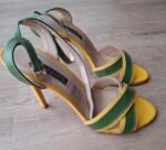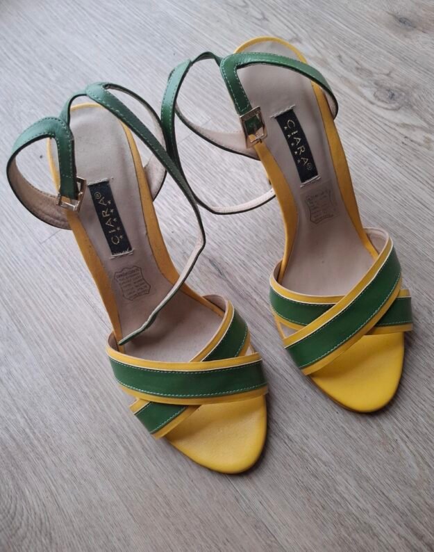 Hermosas Sandalias en verde y amarillo, cuero vacuno.
