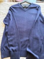 Se vende Suéter cuello V color azul marino de la marca Tommy Hilfiger, prenda elegante y versátil para cualquier ocasión.