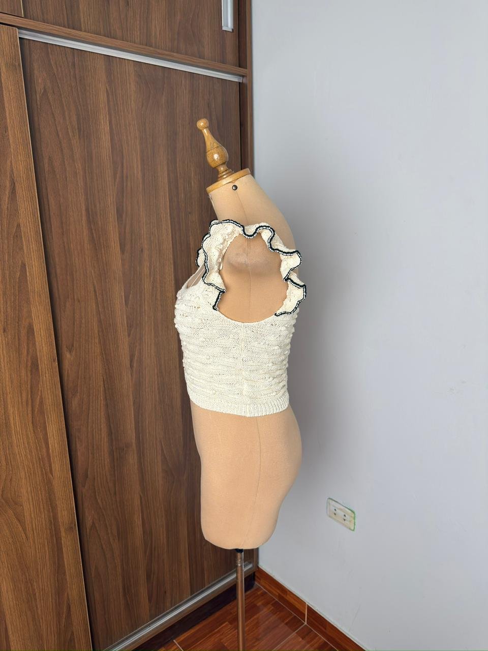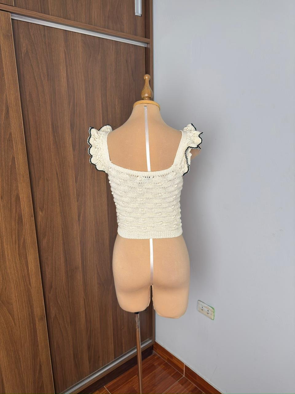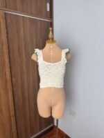 Este top de crochet blanco con detalles en negro es una pieza elegante y versátil para tu guardarropa. con su diseño ligero y cómodo, es perfecta para cualquier ocasión, desde un día relajado hasta una noche especial. el toque de crochet añade un detalle artesanal que realza su belleza.
