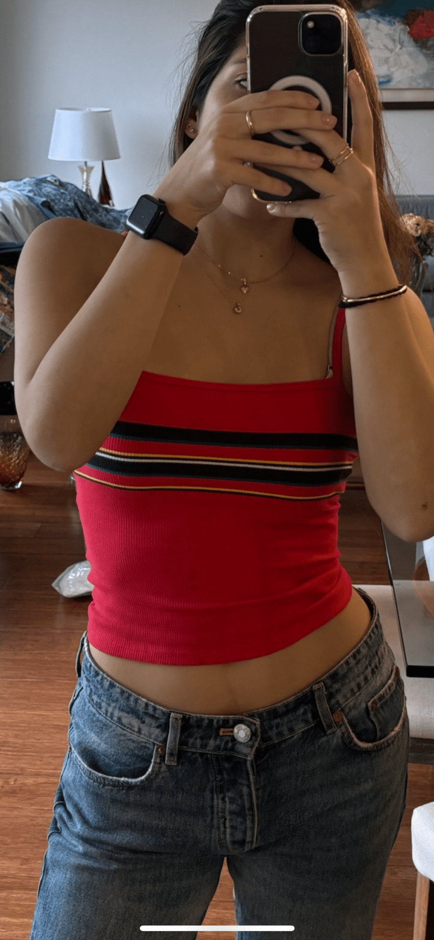 Top rojo, talla M, con raya al medio, en perfecta condición, dos usos.