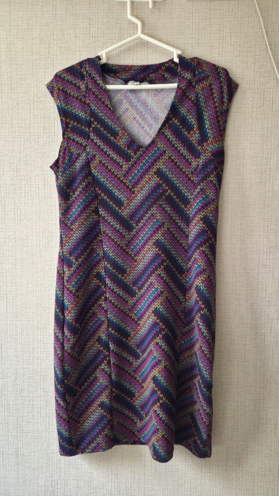 Vestido marca Baba Design, cuello V talla M/L, manga cero. Un solo uso, medidas: ancho (40 cm), largo (90cm)