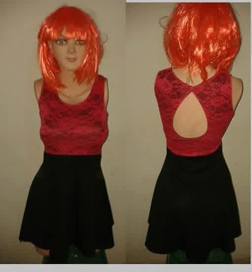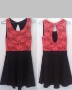 Vestido con encaje en rojo ,corte A talla S. Estado 9.5 una sola puesta