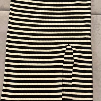 Vestido tejido de hilo a rayas largo hasta arriba de los tobillos