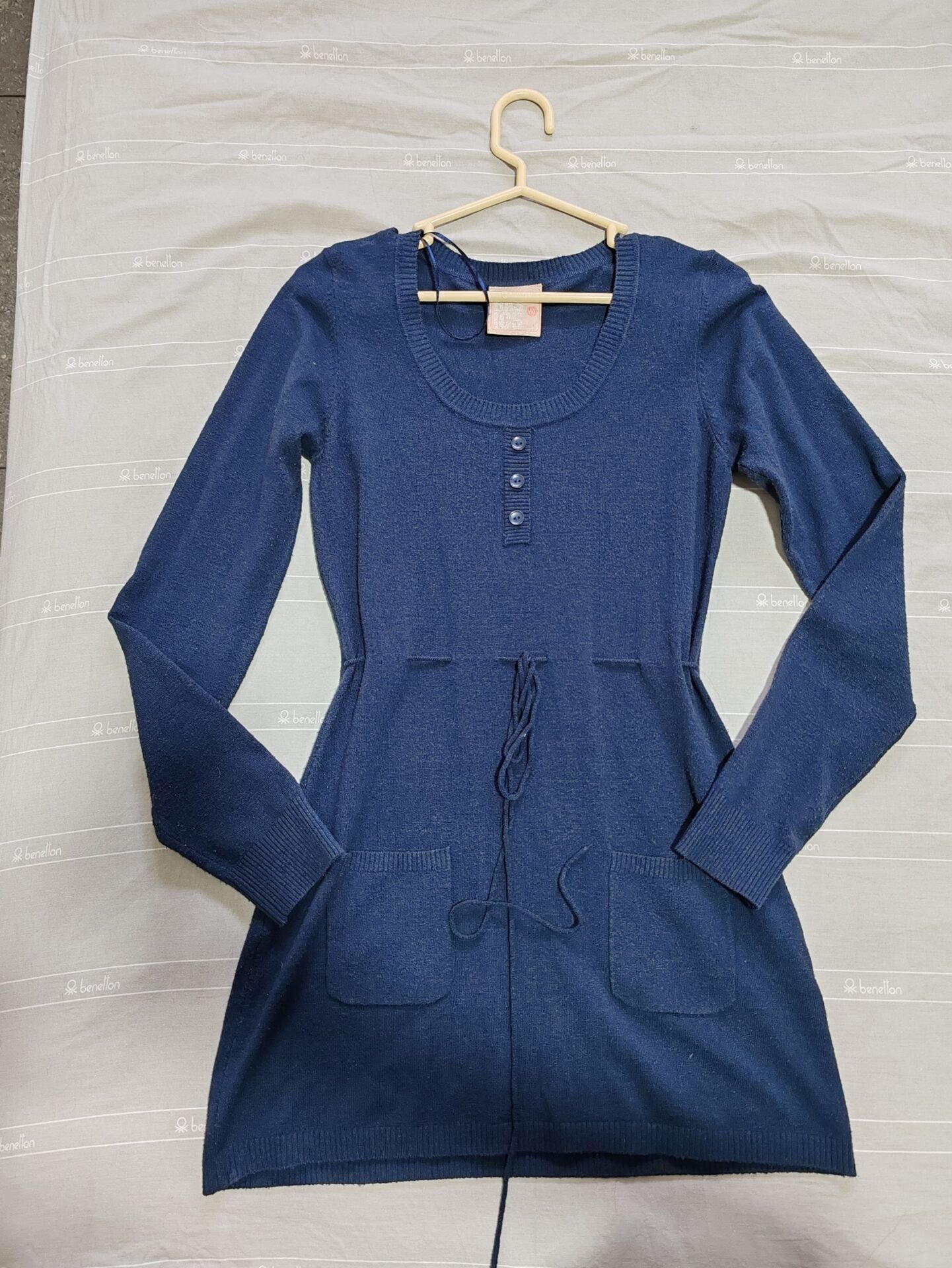 Vestido azul manga larga de hilo, talla M, condición 9/10 marca Sybilla