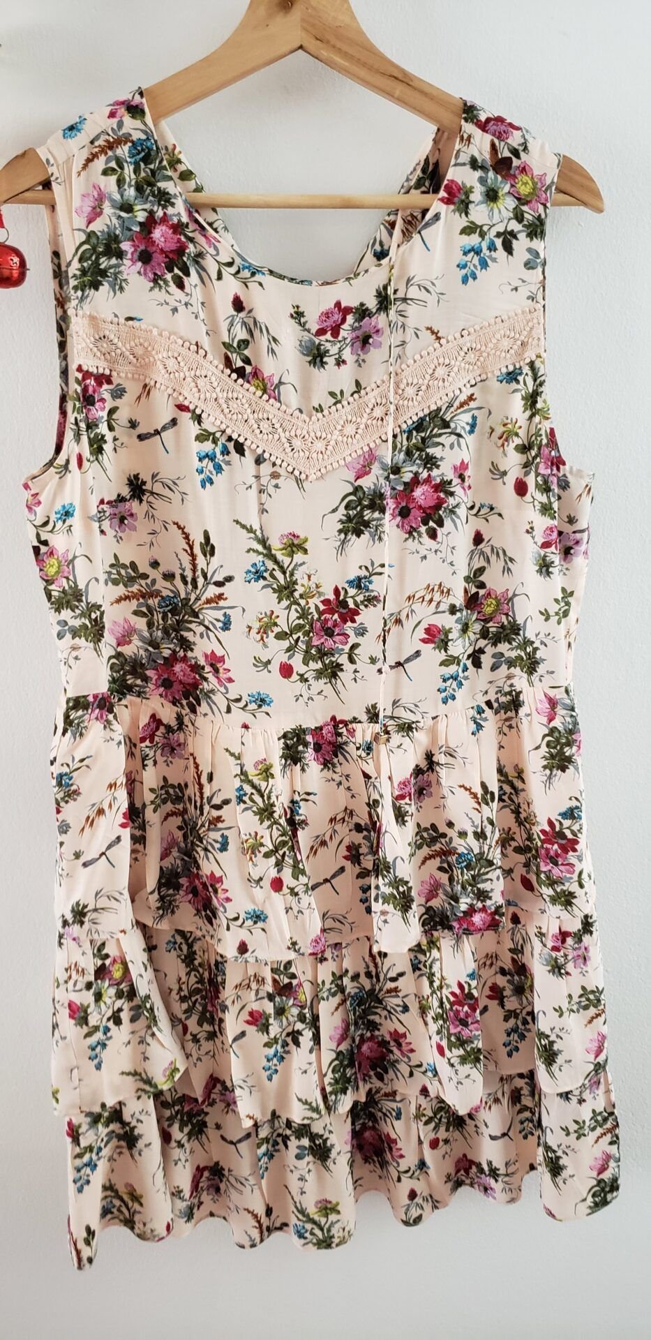 VESTIDO FLOREADO, SIN MANGAS CON AMARRE EN LA ESPALDA,