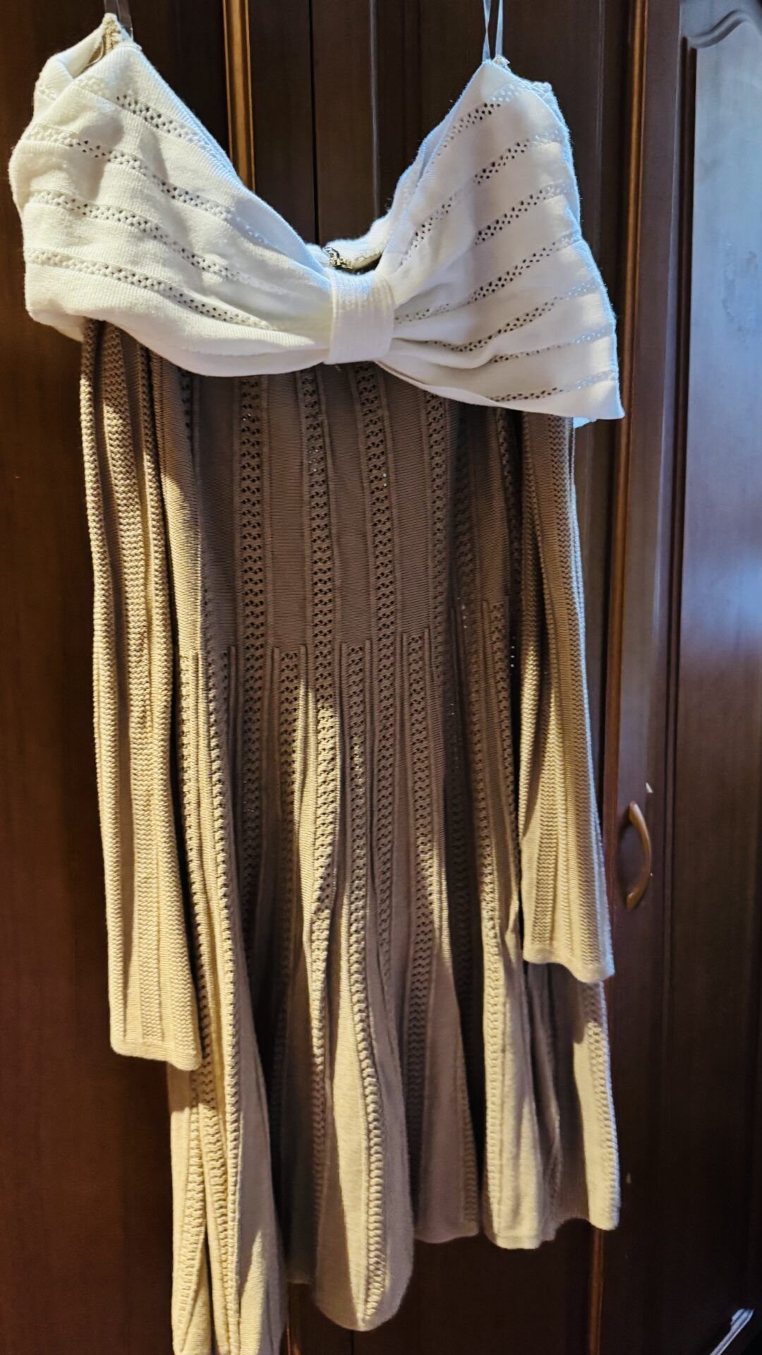 vestido modo de hilo, con detalle en los hombros tipo lazo.