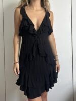Vestido negro talla S (sin marca), las tiras se ajustan atrás y tiene cierre en la parte de atrás, arma hermoso y está como nuevo.