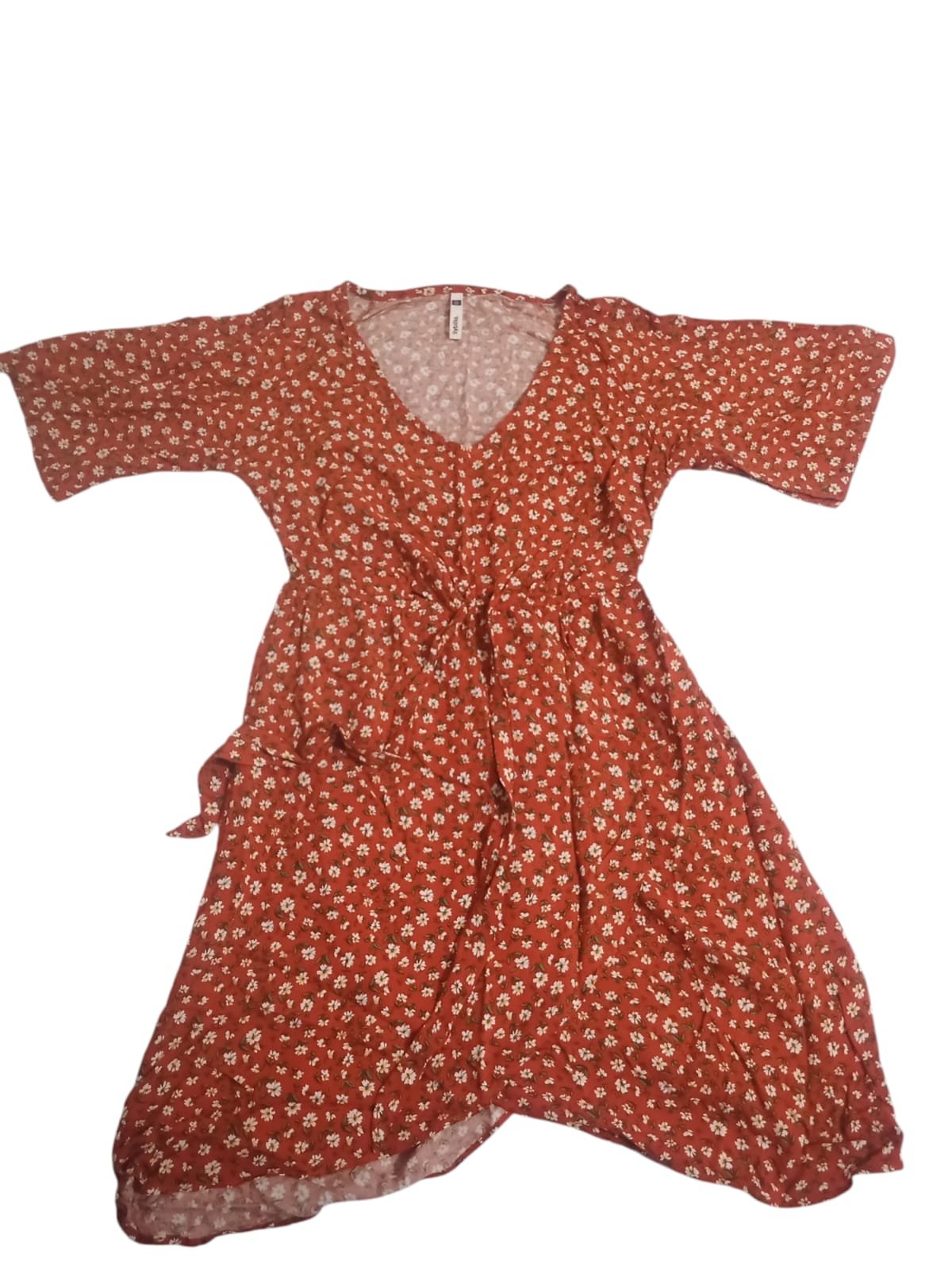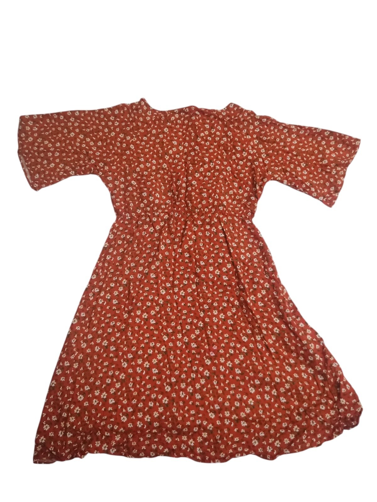 Vestido rojo con flores, manga 3/4 - Sybilla