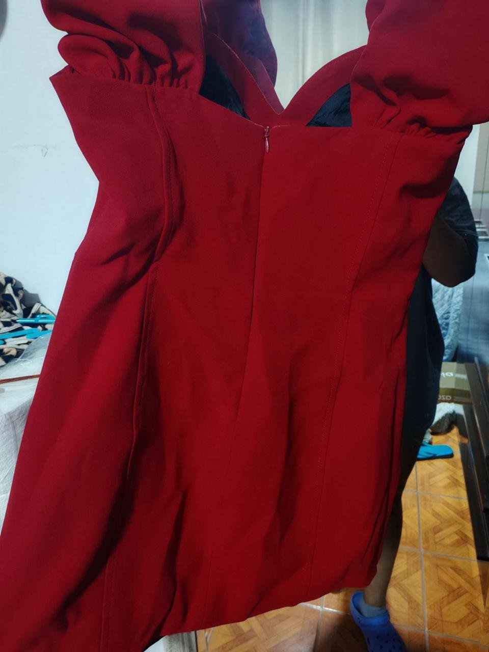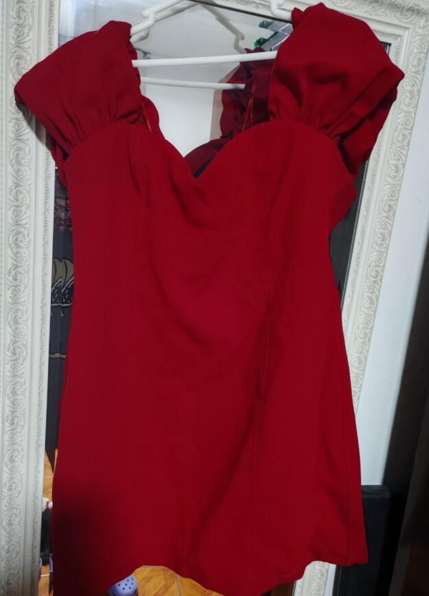color rojo ,corto , entallado , con detalle en los hombros