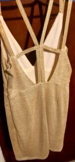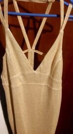 Vestido dorado de fiesta talla S escote en V por delante y por la espalda es tiene varios cruces detalle que se puede ver en las fotos.
