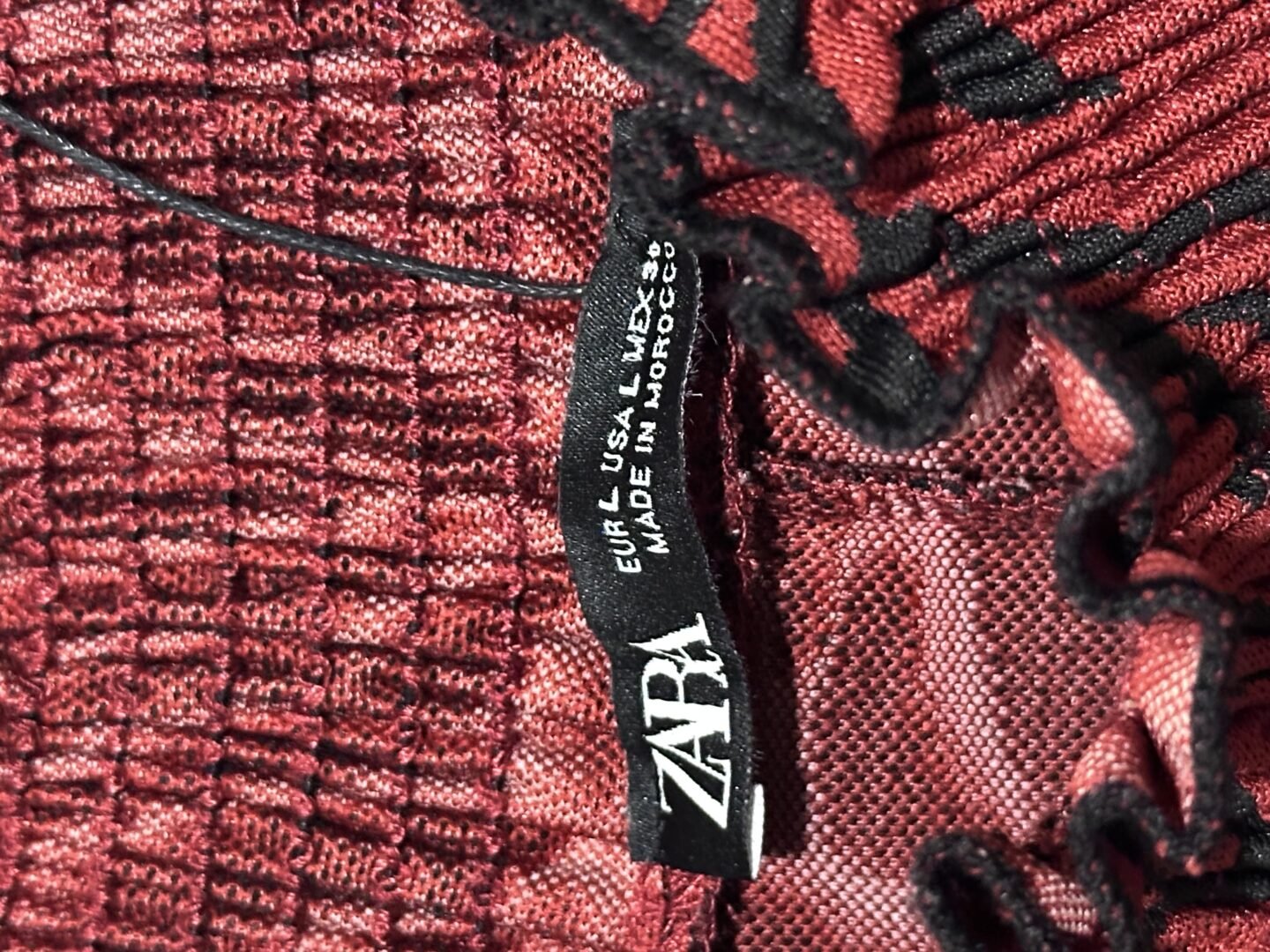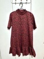 ZARA Vestido corto nuevo, con etiqueta, talla L. Estampado color rojo y negro. Cuello semi alto, y falda con pequeño volado.